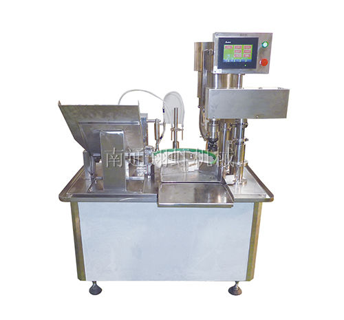 本機是口服液生產(chǎn)線中的灌裝主機,主要用于對5~30ml易拉蓋(或鋁塑蓋)直管瓶的灌裝、上蓋、封口。釆用螺桿進瓶,送瓶可靠;間隙灌裝;電磁振蕩送蓋,上蓋率高。該機灌裝封口合二為一,設計先進,結(jié)構(gòu)緊湊。