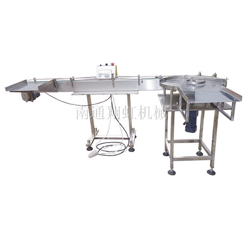 本機(jī)為液體灌裝后的燈檢設(shè)備,待檢測的瓶子經(jīng)供瓶盤整理后排成一排由撥輪經(jīng)過檢驗口,瓶子后面有白色燈透照,瓶子前有放大鏡放大,玻璃瓶中的異物很容易被目測。