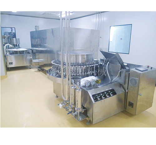 本機(jī)為口服液生產(chǎn)線洗烘灌聯(lián)動(dòng)機(jī)組,主要用于對10ml(20ml)易拉蓋(鋁塑蓋)直管瓶的清洗、烘干、灌裝、上蓋、封口。采用雙螺桿進(jìn)瓶洗瓶或立式超聲波洗瓶,壓力水氣交替沖洗,熱風(fēng)循環(huán)烘箱烘干或石英管烘箱,灌封機(jī)采用12頭局部跟蹤灌裝,計(jì)量泵可選不銹鋼泵或陶瓷泵,電磁振蕩送蓋,十頭行星軋蓋。該機(jī)組設(shè)計(jì)先進(jìn),結(jié)構(gòu)緊湊。